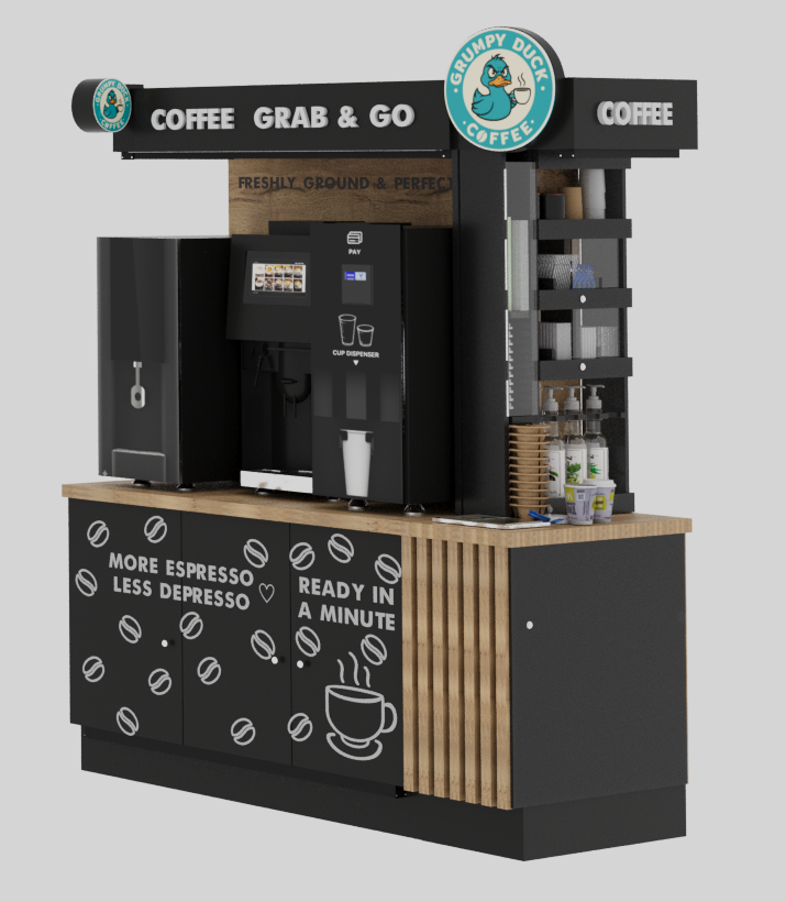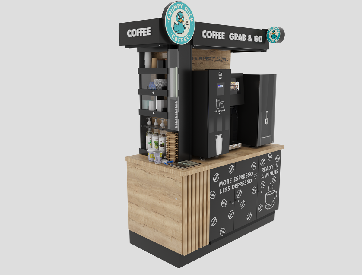Grumpy Duck Coffee is a U.S. manufacturer of smart, fully automated self-service coffee kiosks that serve premium hot and iced beverages.